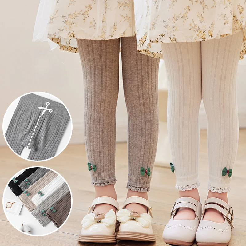 Spring Autumn Lace Baby Leggings Girls Newborn High waist Cotton Strumphose Bottom Foot Pants