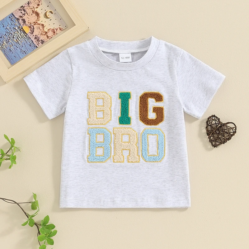 2024-01-11 Lioraitiin Summer Toddler Baby Boy T-Shirts Rompers BIG BRO Fuzzy Embroidered Letter Crewneck Short Sleeve Tops