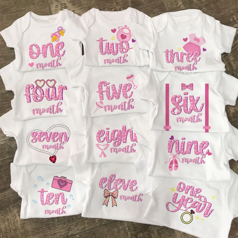 Baby Milestone Clothes Newborn 1-12 Monthly Milestone Bodysuit Babygrow Romper Infant Photography Prop Outfit Infant Shower Gift
