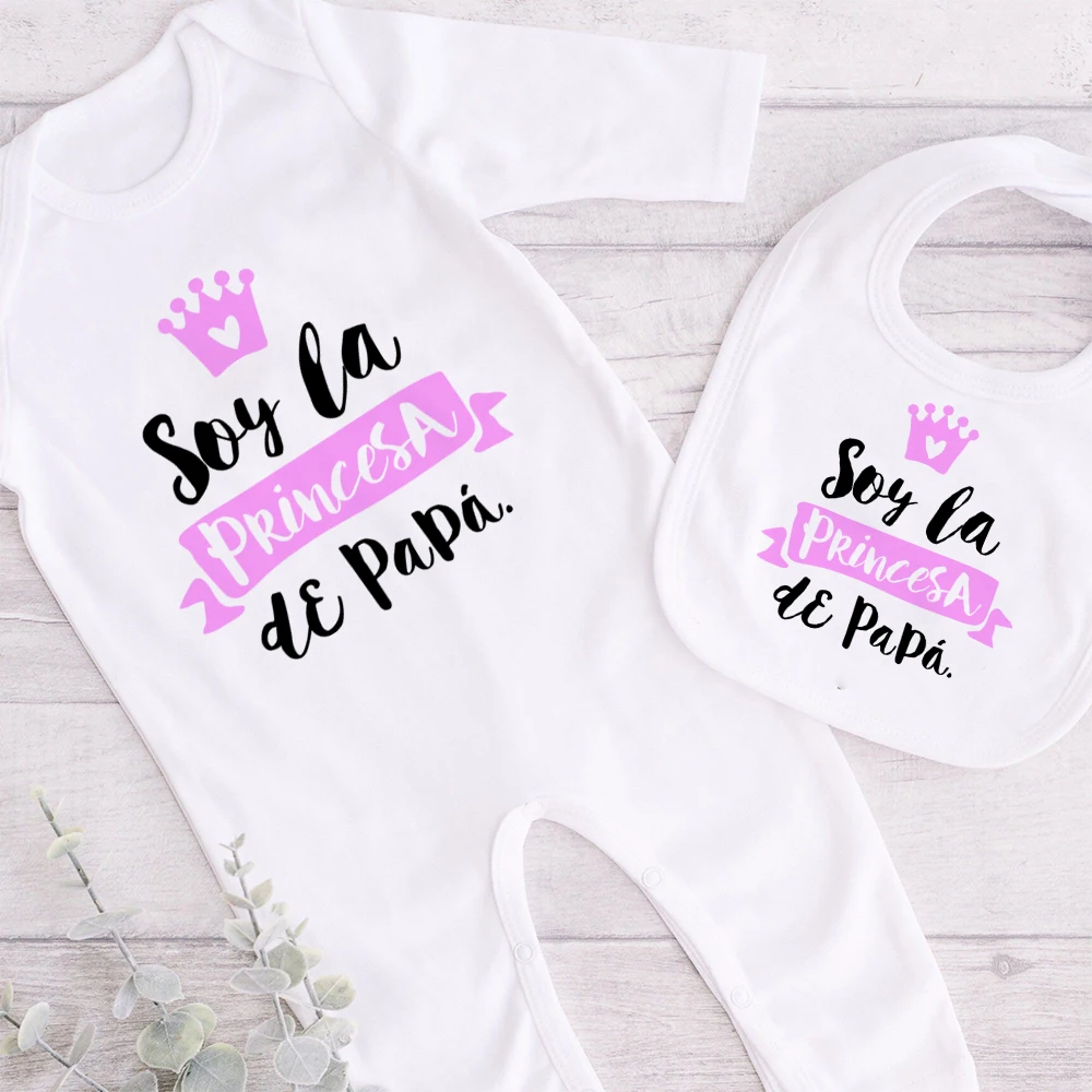 Newborn Baby Homecoming Sleep Suit I Am My Father’s Princess Sleepsuit and Bib New Arrival Gift Babygrow Matching Bibs