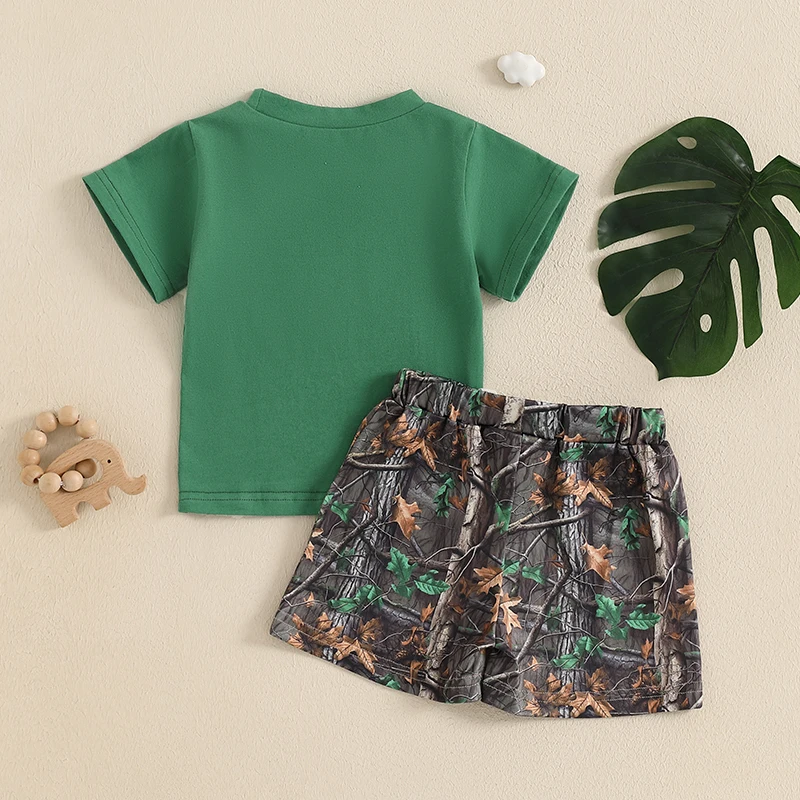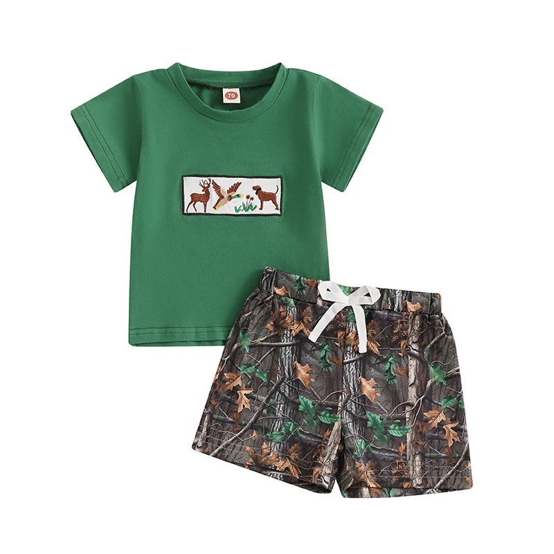 Baby Boy Hunting Outfits Duck Deer Embroidery Short Sleeve T-Shirt Jungle Camo Shorts Set Toddler Summer Clothes