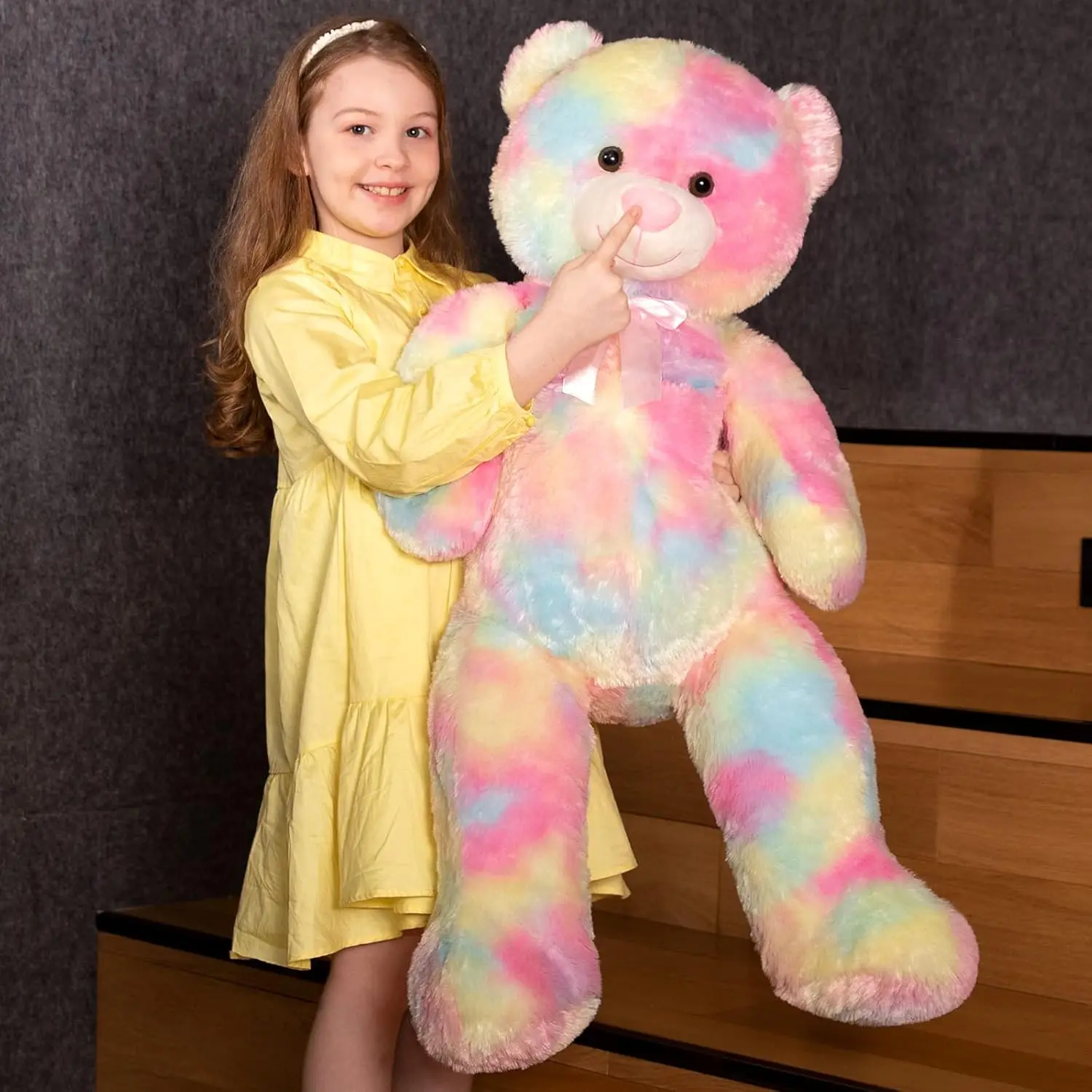 Big Teddy Bear Stuffed Animals, Colorful Teddy Bear Plush Toy for Girlfriend Children, Tie-dye Pink 39inch