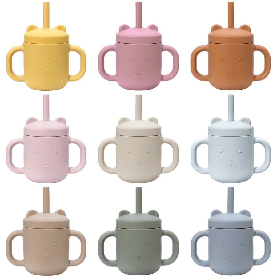 Cartoon Bear Baby Drinking Cup Double Handle Straw Feeding Cup BPA Free Soft Silicone Learn To Drink Cup Newborn Accessories