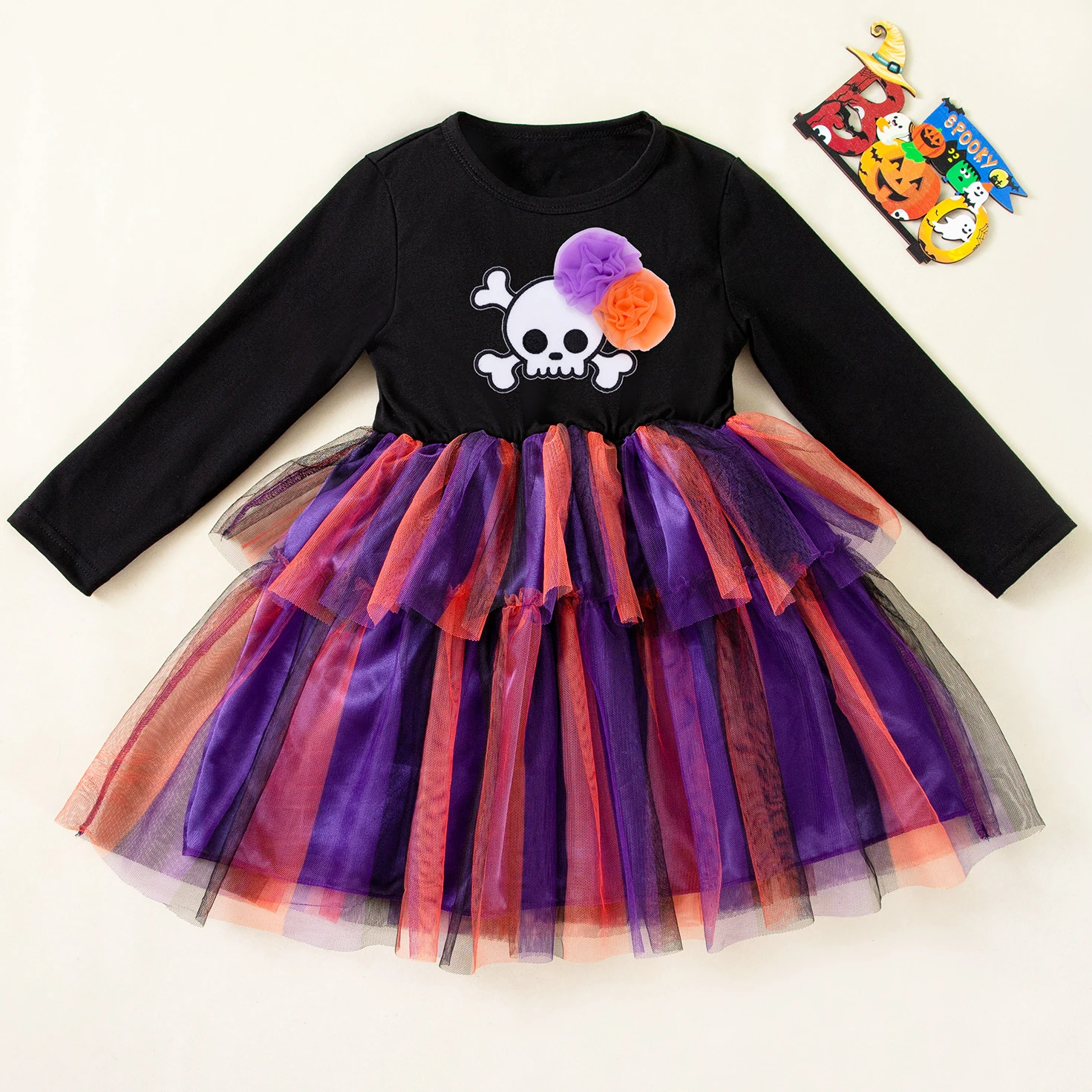 Girls Halloween Dress Long Sleeves Tulle Cake Kid’s Dress with Trick or Treat Cosplay Clothes Trio Halloween Costumes Girls
