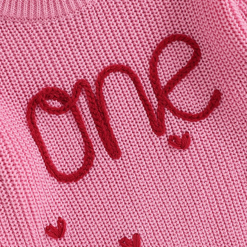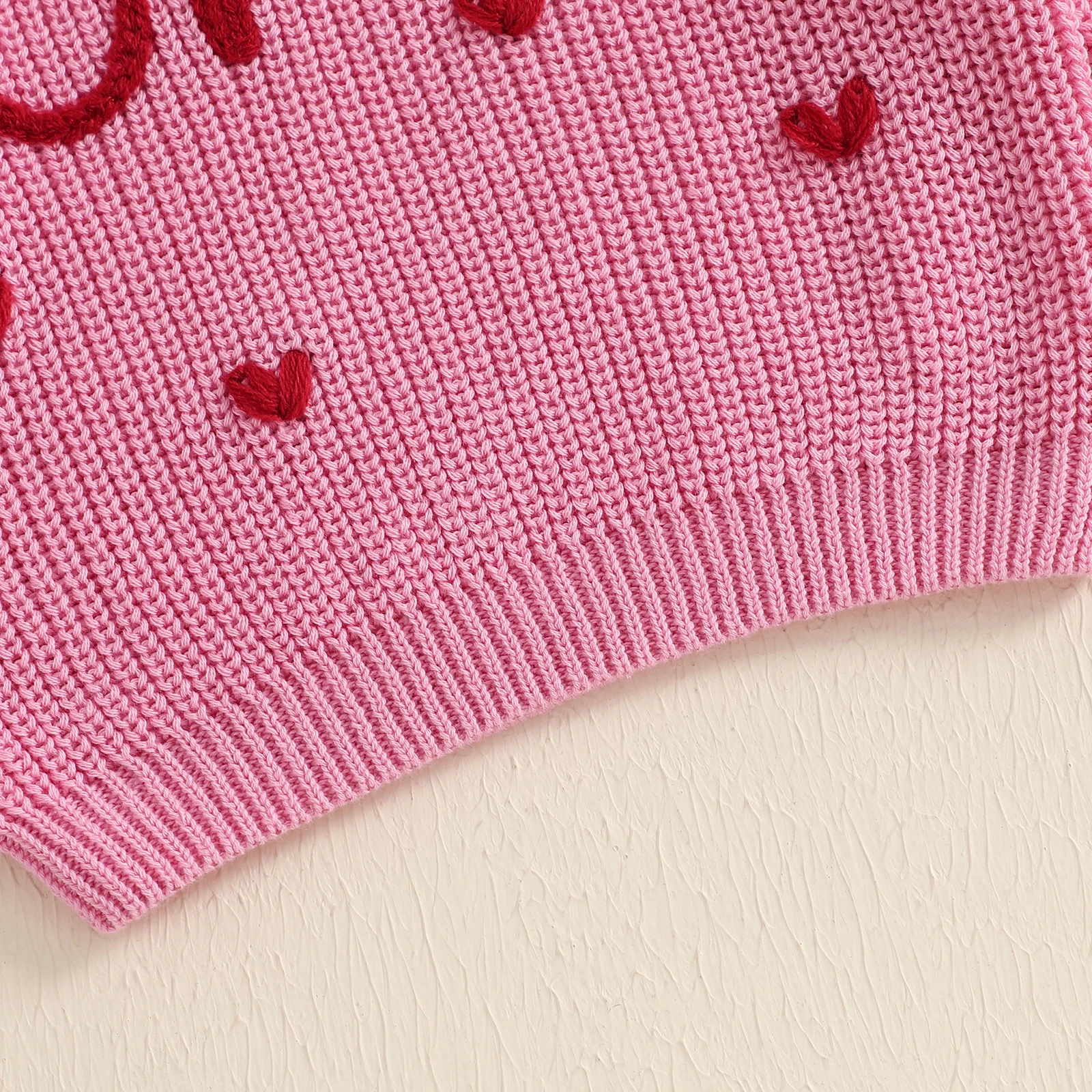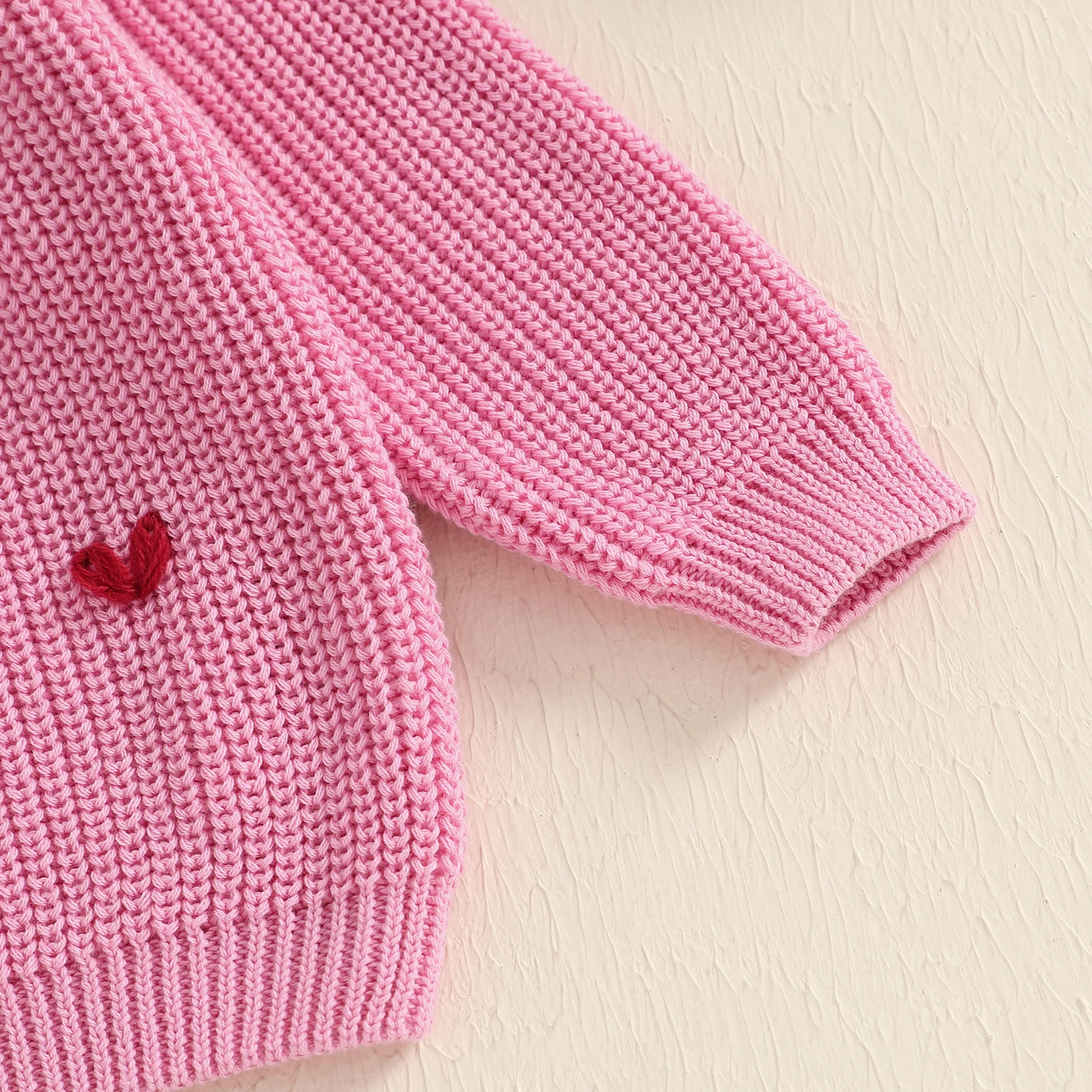 MISOWMNJOY Knitted Baby Girls Sweater for Valentine Newborn Jumper Casual Letter Heart Embroidery Long Sleeves Toddler Pullover