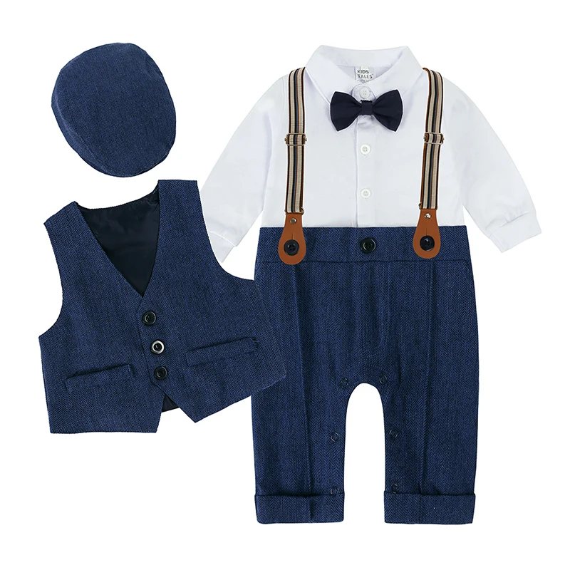 Baby Suits Newborn Boy Clothes Romper + Vest Formal Clothing Outfit Party Bow Tie Children Birthday Dress New Born 0- 2Y