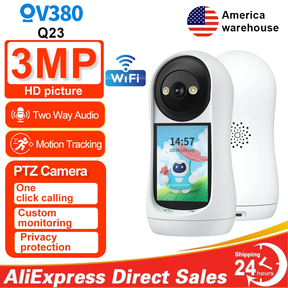 V380 3MP 2K PTZ WiFi Camera Indoor Baby Monitor Cry Detection One-Click Video Call Surveillance Camera Home Security Protection