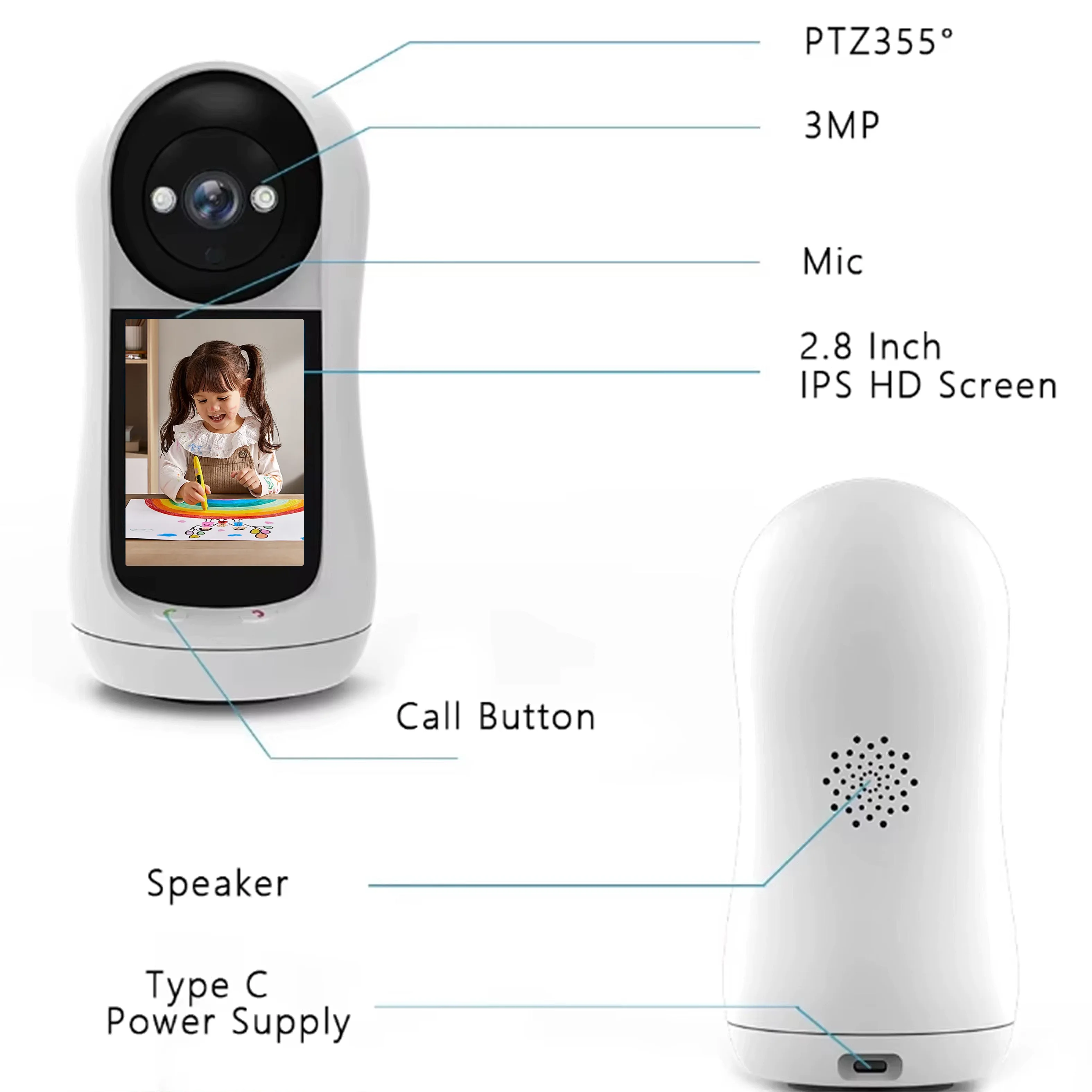 Hign-concerned Chemical: None Power adapter: US Plug Feature: Intercom,IP Network,Motion Detection,LCD Display Storage Capacity: 128GB Model Number: Q23 Size: 90*90*170mm Display Screen Size: 2.8 inch Lens Type: CMOS